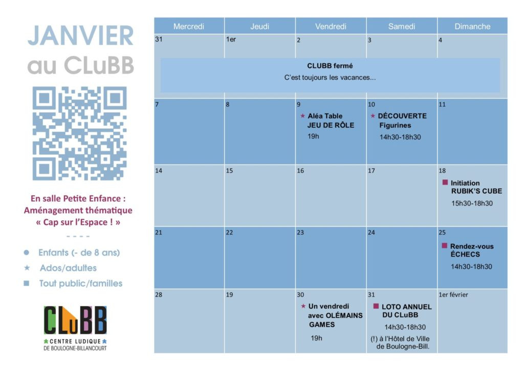 Le CLuBB sera fermé du 20 décembre 2025 au 6 janvier 2026 (vacances d'hiver).