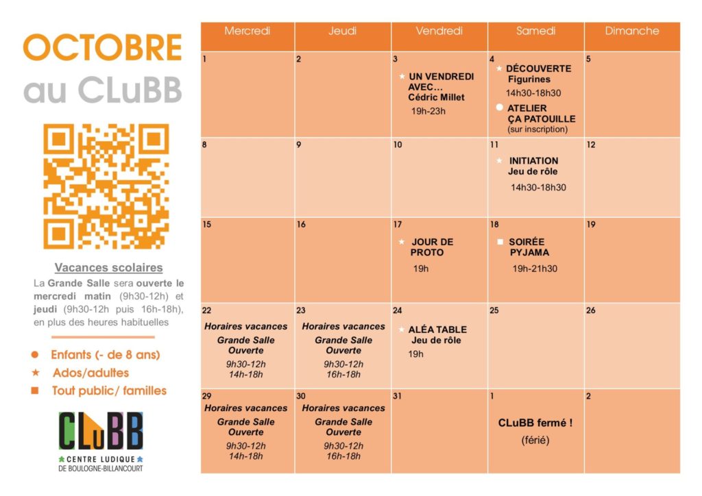 À chaque début de mois, retrouvez le calendrier des animations et événements programmés (cliquez dessus pour agrandir).