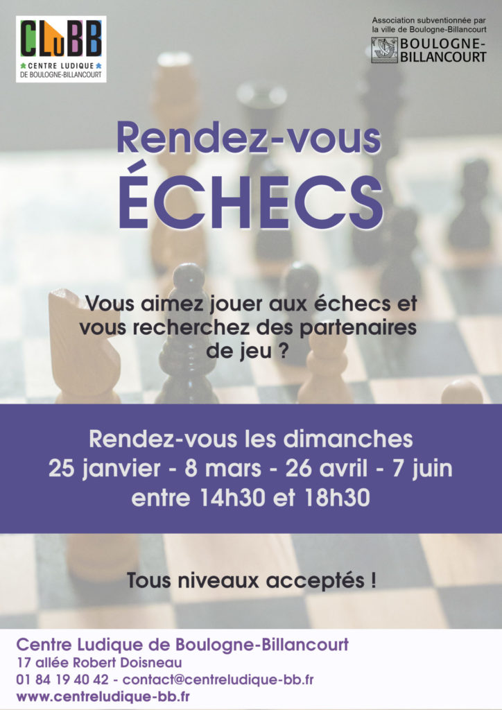 Cette année, le CLuBB propose ses Rendez-vous Échecs, pour permettre aux joueurs de tous niveaux de trouver des partenaires de jeu et s’affronter sur des temps dédiés.